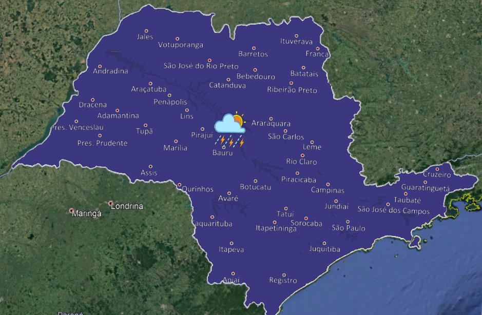 Boletim em áudio sobre a previsão do tempo em todas as regiões do estado de São Paulo.